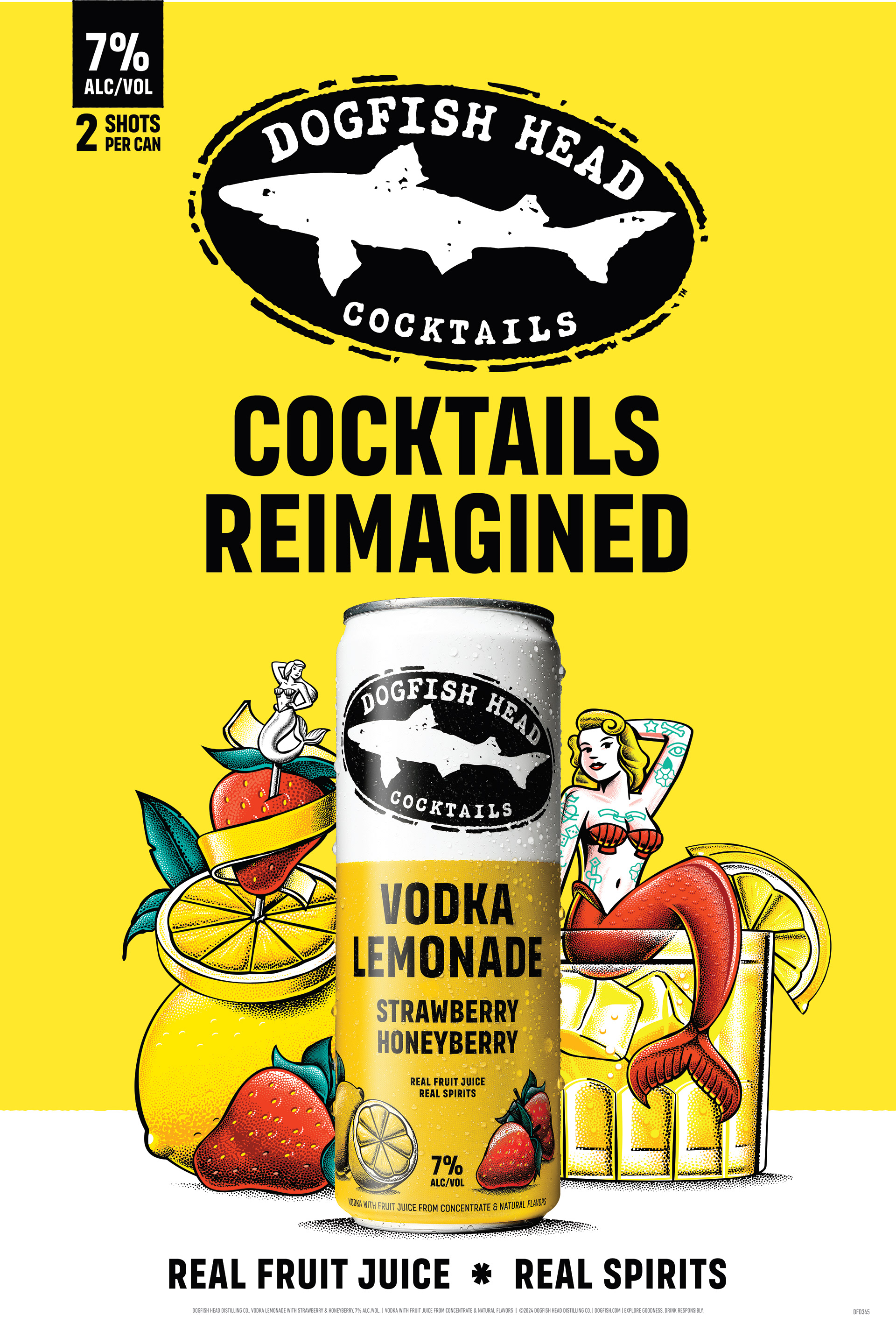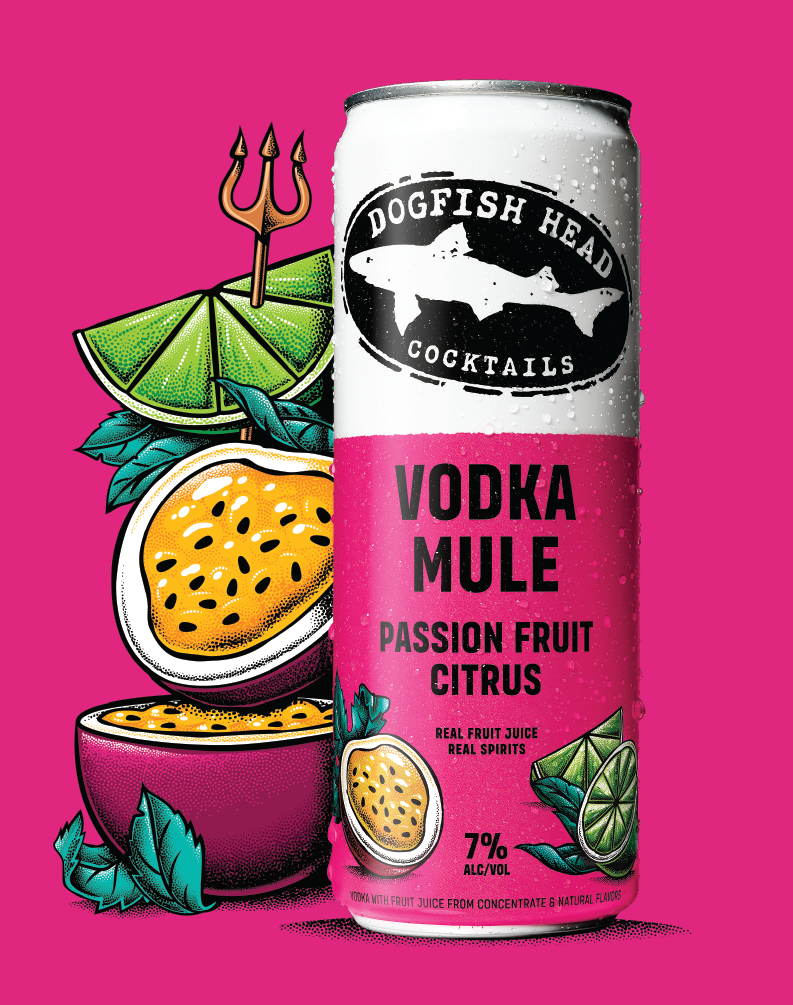 The Dogfish Head Cocktails brand is a modern, edgy spirits brand from a craft beverage icon you can depend on. It's as vivid in personality as the drinks we shake up. Inspired by artful nautical tattoos and the lore of our seaside home, design is centered around flavor-forward illustration in our modern stippling style.