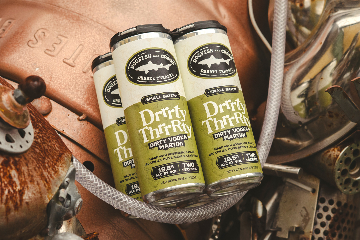 Art Direction & Packaging Design for Dogfish Head's "Drrrty Thrrrty Martini" LTO Cocktail release.